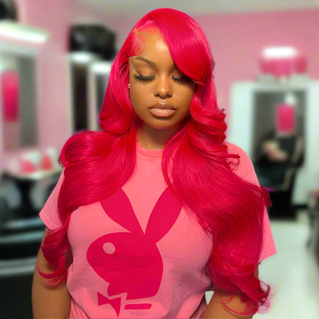 Rose Pink 13X4 Ready Go Lace Frontal Body Wave Wig Transparent 13x6 Wavy Human Hair Wigs 99J Red Highlights 6X4 Lace Closure Wig