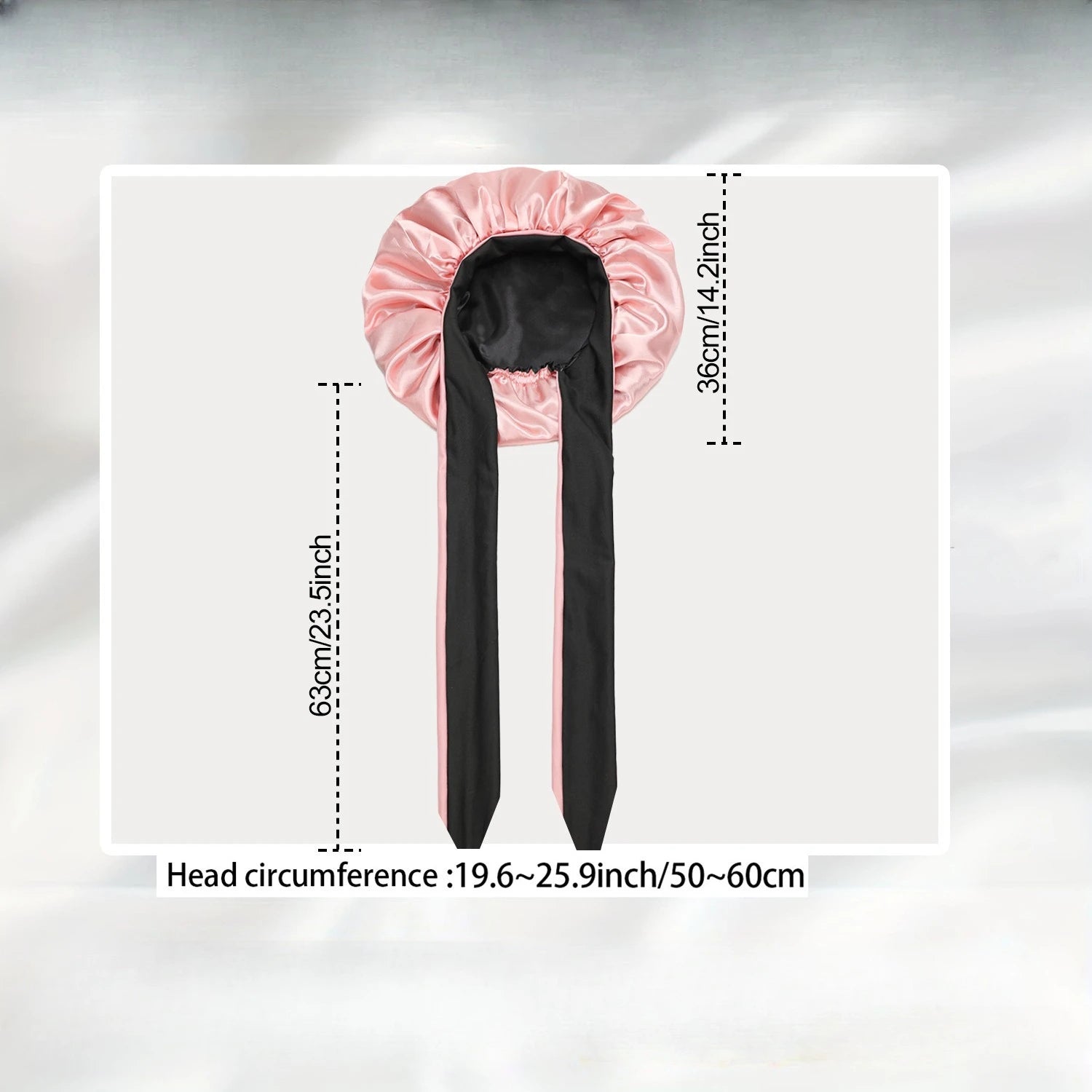 Women Double-layer Satin Sleep Cap Elastic Tie Band Cover Bonnet
